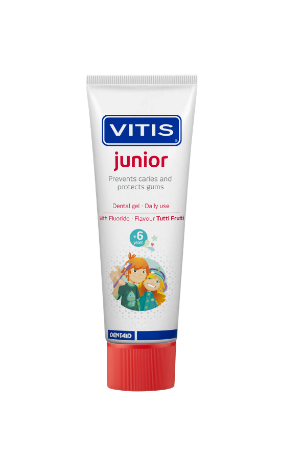 VITIS Junior tandgel is speciaal ontwikkeld voor een optimale mondhygiëne van kinderen vanaf 6 jaar, wanneer de vorming van het permanente gebit begint. Daarbij zijn de richtlijnen van de Europese Vereniging van Pediatrische Tandheelkunde (EAPD) aangaande het fluoridebeleid gevolgd. Dankzij de lage schuringswaarde is de VITIS Junior Tandgel niet schadelijk voor de tanden tijdens het poetsen. De aangename Tutti-Frutti smaak maakt het poetsen van de tanden een leuk moment.